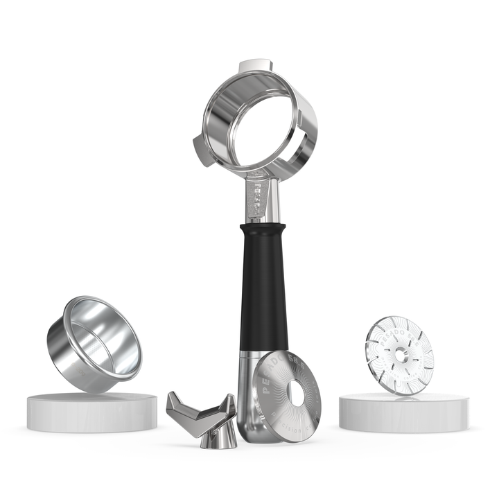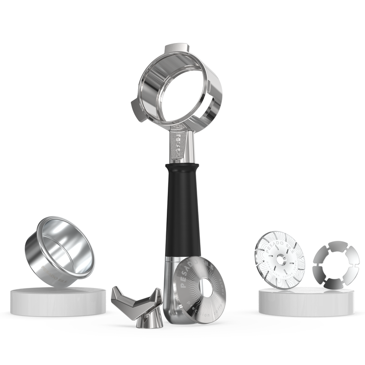 At its heart is the Pesado hybrid portafilter with threaded bottomless body and detachable spouted system, allowing you to toggle between naked and spouted configurations in seconds. Built entirely from premium 304 stainless steel, this tool delivers commercial-grade durability and ideal heat retention.